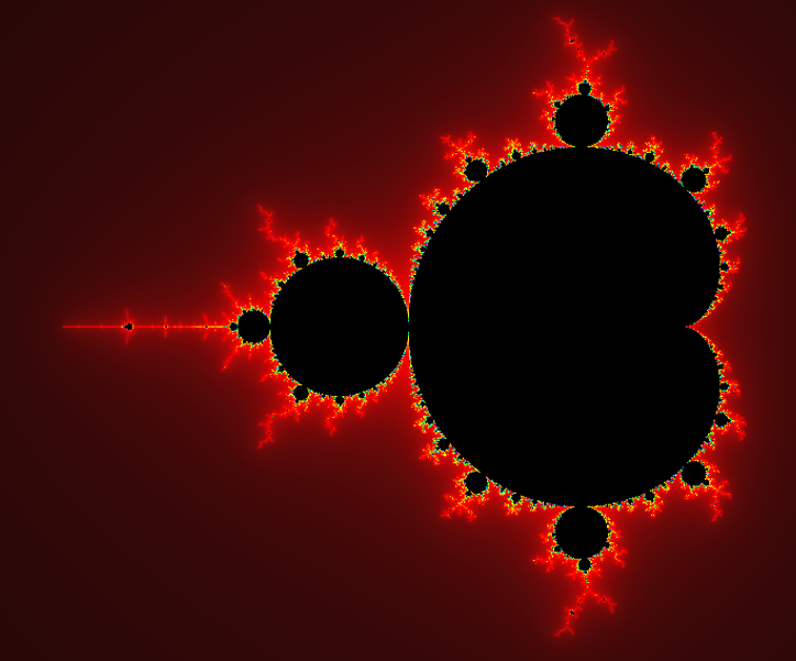 Populär wurden die Fraktale erst durch den französisch-US-Amerikanischen Mathematiker Benoît Mandelbrot. Nach ihm wurde auch die sogenannte Mandelbrot-Menge benannt. Sie ist eine Menge an komplexen Zahlen, die auch nach unendlichen Verkettungen immer noch beschränkt bleiben, sie werden also bei diesem Verketten nicht unendlich groß. Stellt man die Zahlen, für die dies zutrifft, grafisch als Punkt dar und färbt diese nach bestimmten Regeln, entsteht folgende Grafik: