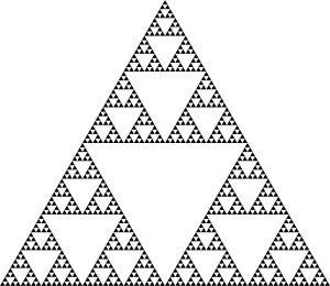 Ein berühmtes Beispiel ist das sogenannte Sierpinski-Dreieck, welches bei Vergrößerung immer noch so aussieht wie in folgender Grafik: