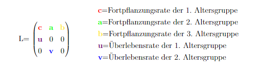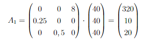 Um eine Prognose zu treffen muss die Matrix mit einer Anfangspopulation multipliziert werden. Das sieht dann so aus: